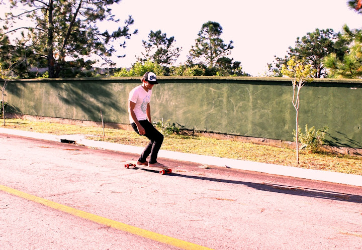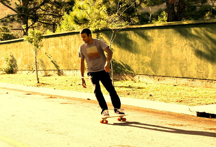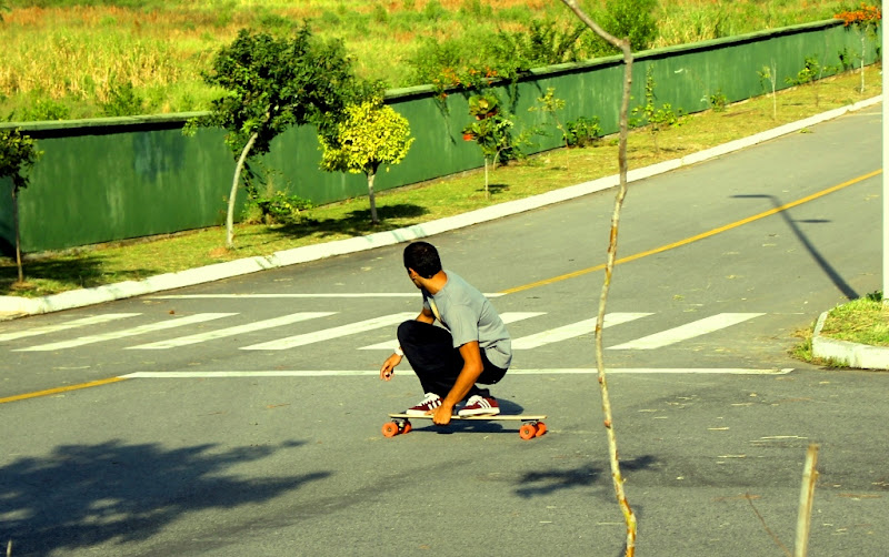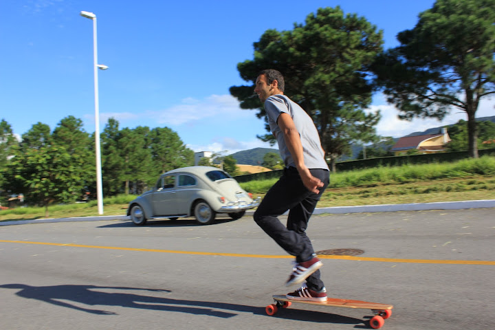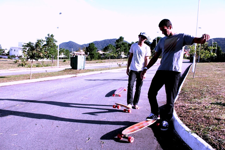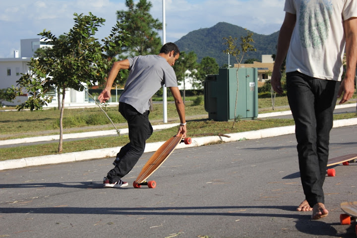 No asfalto cheio de curvas e relevos suaves de um condomínio em construção, testamos modelos de 03 diferentes tamanhos e especificações, sempre com a beleza e o acabamento primoroso característcos das criações de Siebert - mas cujos detalhes técnicos escapam ao meu parco conhecimento sobre o surf no concreto.