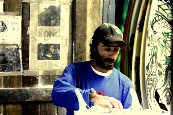 Numa passada rápida pela oficina do shaper e "reparador" de pranchas Kong – uma figuraça! – o assunto girou no fato de Floripa abrigar um número incrível de pessoas das mais diversas procedências ganhando a vida com o surf, seja em grandes fábricas de pranchas ou nas dezenas de oficinas de fundo de quintal. Juntos, eles formam uma comunidade de verdadeiros “operários do surf” que, na maioria das vezes, passam despercebidos pelo público em geral - e que certamente merecem uma reportagem bem mais elaborada.